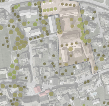 Autour de l'école, ils proposent de rajouter un bâtiment pour accueillir l'administration communale et de densifier la zone pour créer de nouvelles habitations.
