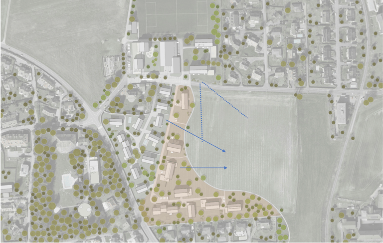 Autour de l'école, un pôle scolaire et social où serait également ajouté un EMS, des logements et des services ou commerces