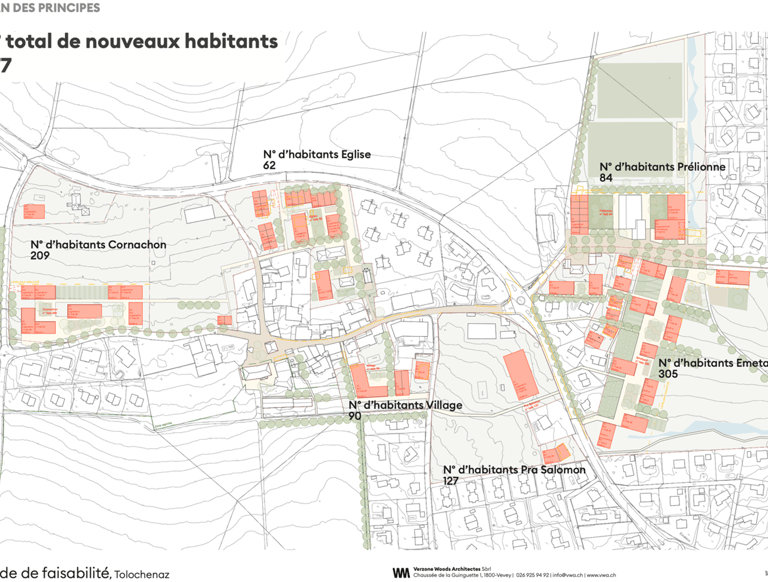 La municipalité a mandaté trois bureaux de paysage et d'architecture pour faire des propositions afin de densifier Tolochenaz. Le 18 avril dernier, la population a été conviée à une soirée pendant laquelle les trois projets ont été présentés, suite à quoi des discussions ont eu lieu par petits groupes sur chacun d'entre eux.
