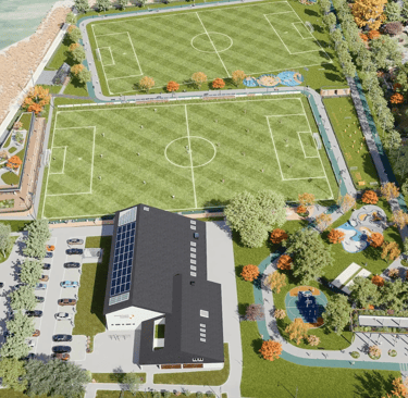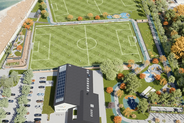 En plus de son potentiel économique, Audrey est conçue comme une zone de rencontres privilégiée qui répond aux aspirations de la municipalité de créer un lieu de vie communautaire. Tout en conservant la salle polyvalente et les terrains de football existants, il met le sport à l’honneur, avec la création de nombreuses installations en complément : gradins en bordure du terrain de football, zones de détente & footing, outdoor fitness, basket…